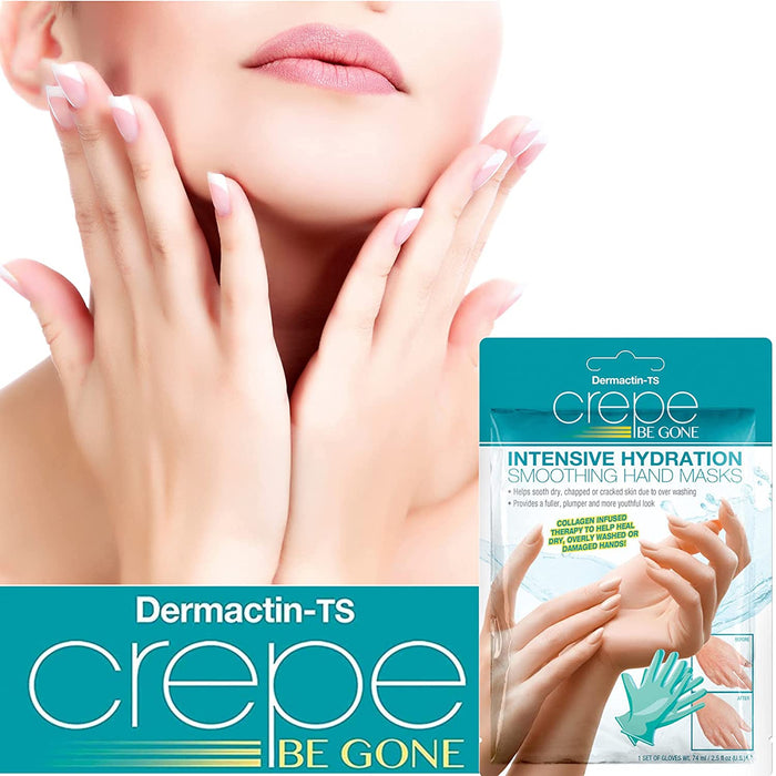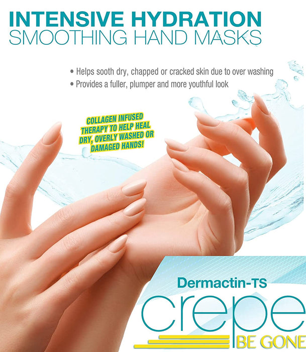 Collagen infused hand masks for dry hands providing therapy to heal dry, overly washed or damaged hands.